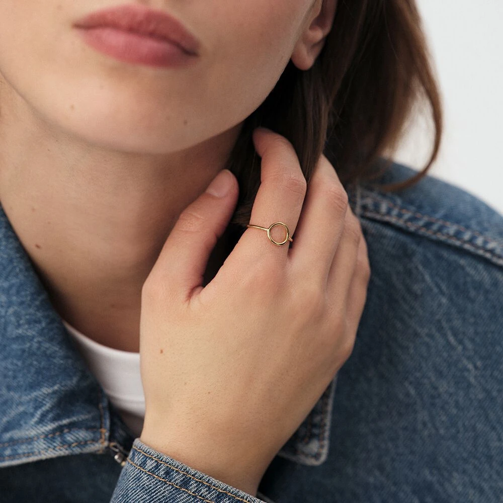 Bague, en argent véritable plaqué or, avec un anneau évidé sur la partie supérieure.