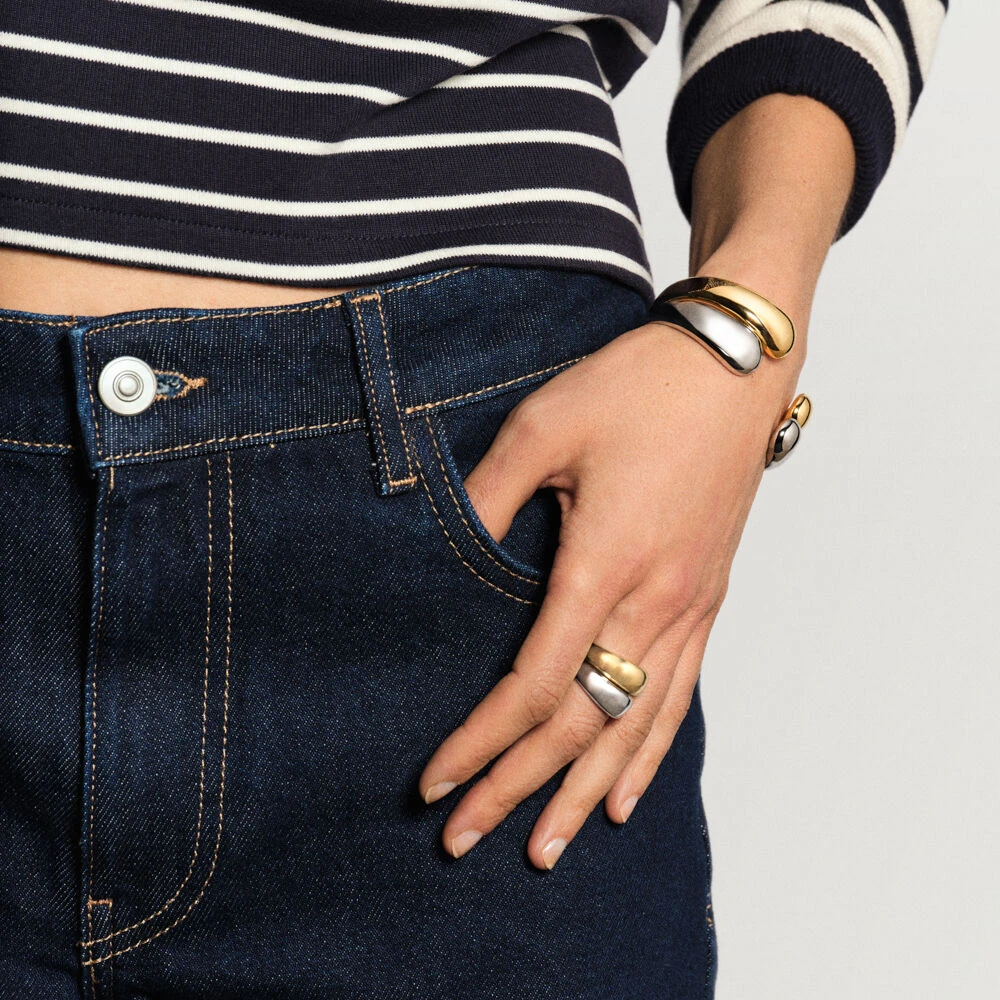 Bague jonc en argent 925/1000 doré 750/1000.