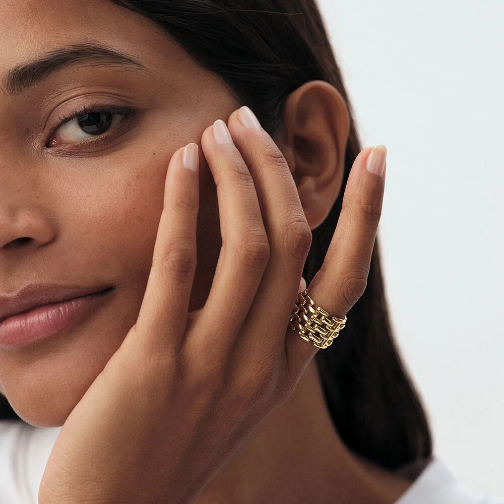 Bague en laiton et étain, au design raffiné inspiré de la maille de montre. Son allure unique associe la robustesse du métal à une finition élégante, idéale pour apporter une touche contemporaine à toute tenue.Disponible en trois tailles : PM (Petit Modèle): 50 à 52 GM (Grand Modèle): 54 à 56TGM (Très Grand Modèle): 56 à 58.