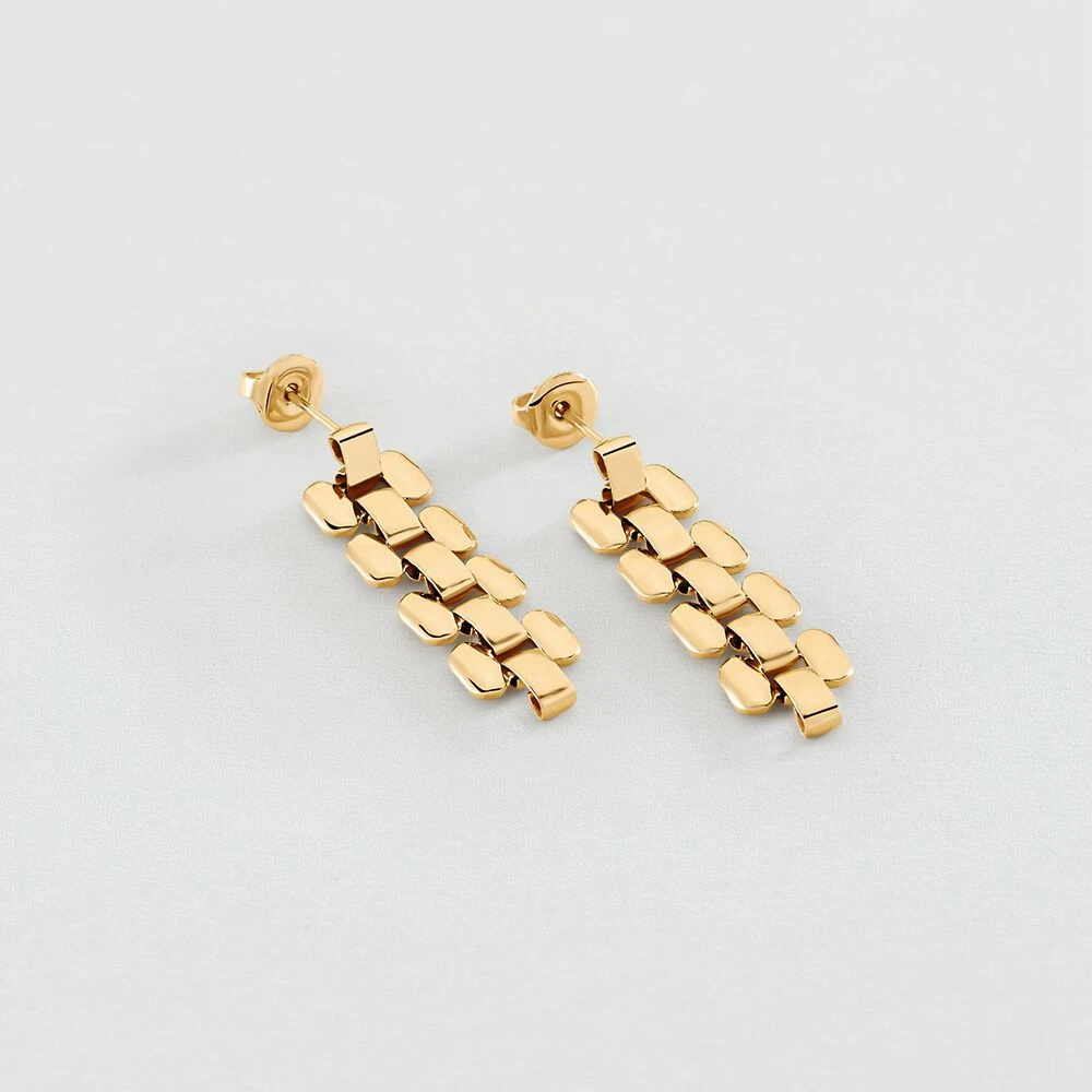 Boucles d’oreilles pendantes en étain doré à l’or 750/1000, maille montre..