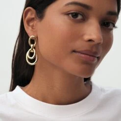 Petites doubles crĂ©oles en argent 925/1000 dorĂ© Ă l’or 750/1000.