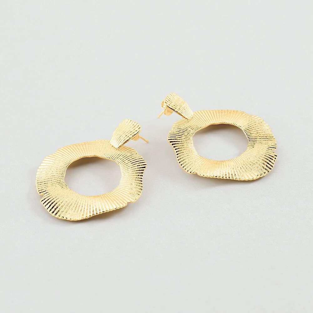 Boucles d’oreilles, en laiton doré 750/1000, anneau irregulier avec texture de coquillage .
