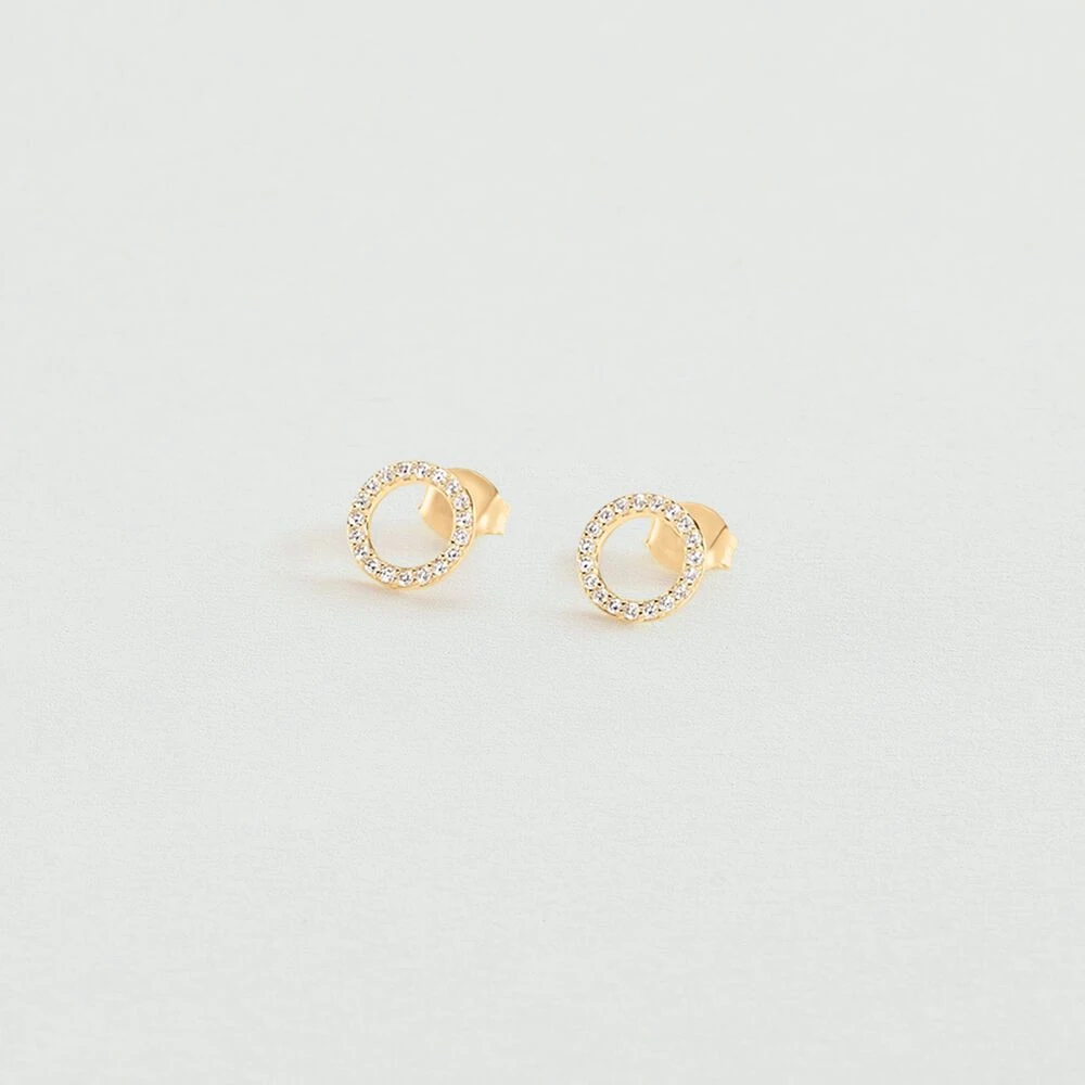 Boucles d’oreilles puces en argent 925/1000 dorĂ© Ă l’or 750/1000 en forme de ronds pavĂ©s. .