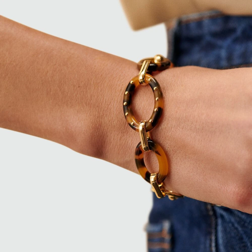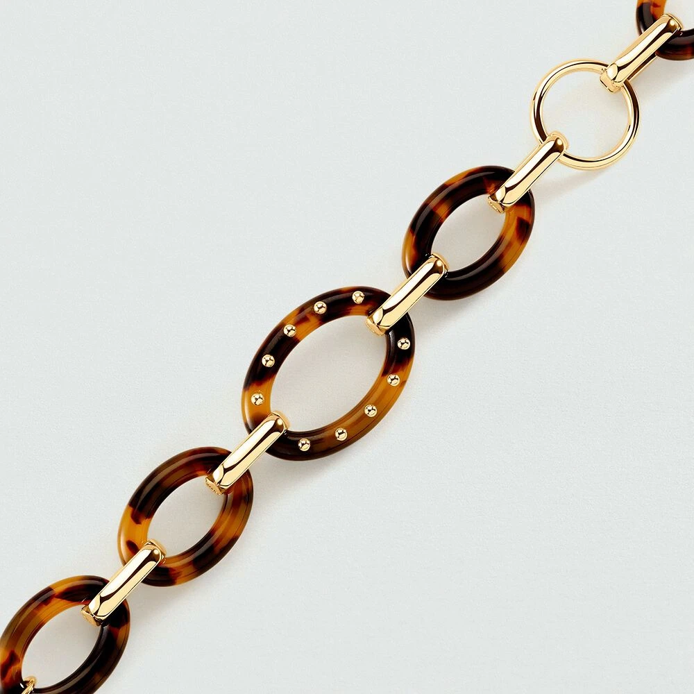 Bracelet en laiton doré 750/1000, avec des maillons ovales en acetate et un fermoir T-bar..