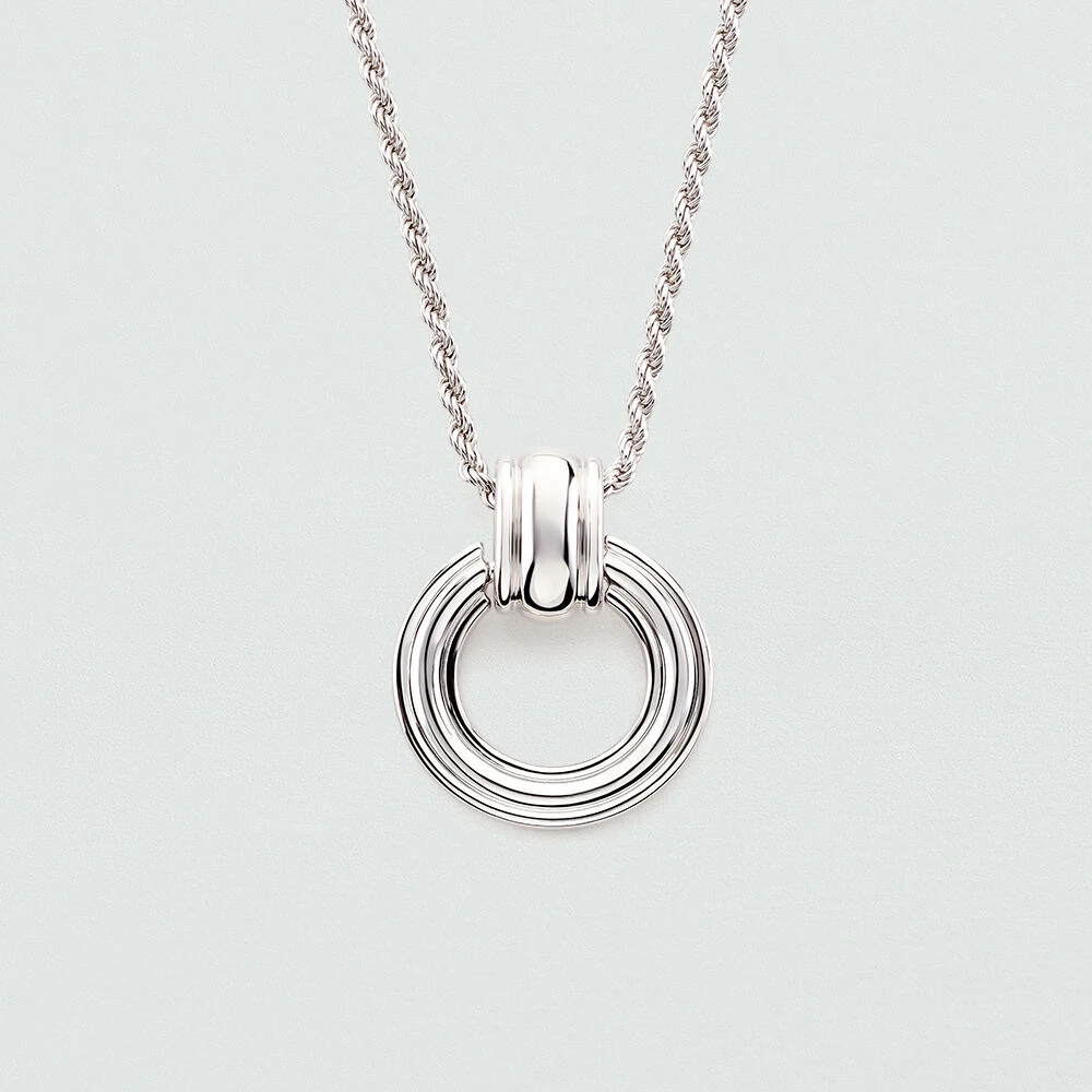 Collier en argent véritable fait d’une chaine jaseron épaisse ornée d’un pendentif au design arrondi. . Ce bijou mesure 450mm et contient une rallonge de 50mm