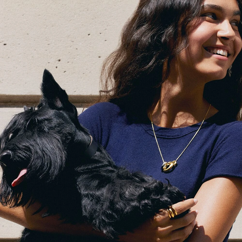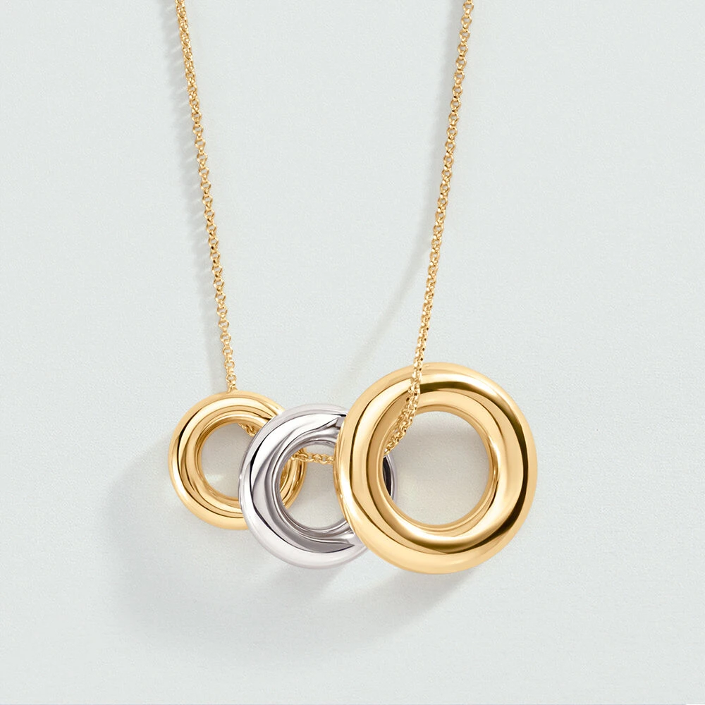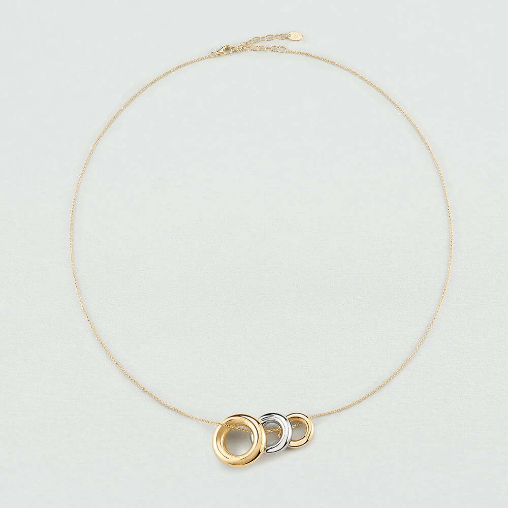 Collier triple anneaux en argent 925/1000 doré à l’or 750/1000 et rhodié. Ce collier possède de multiple portés en elevant et remettant à votre goût les anneaux de votre collier ! . Ce bijou mesure 550mm et contient une rallonge de 50mm