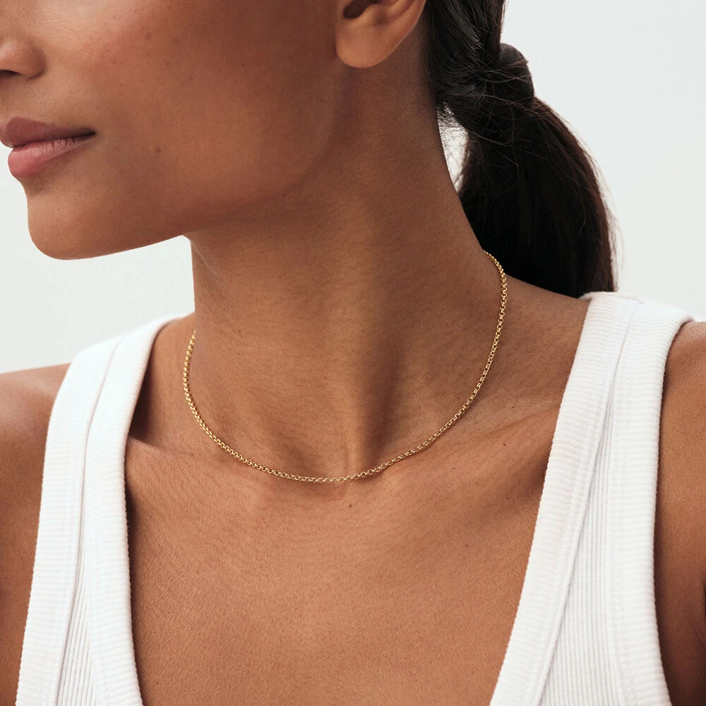Collier de chaîne jaseron de 35cm en laiton doré à l’or 750/1000. Personnalisez votre bijou et changez-le au gré de vos envies en ajoutant à votre chaîne un ou plusieurs pendentifs charms de notre collection Talismans. Ce bijou mesure 350mm et contient une rallonge de 50mm