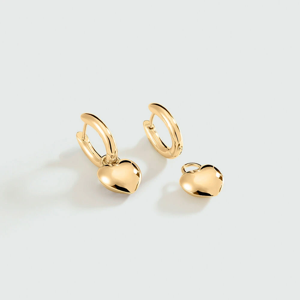 Créoles avec une pampille en forme de cœur en laiton doré. .