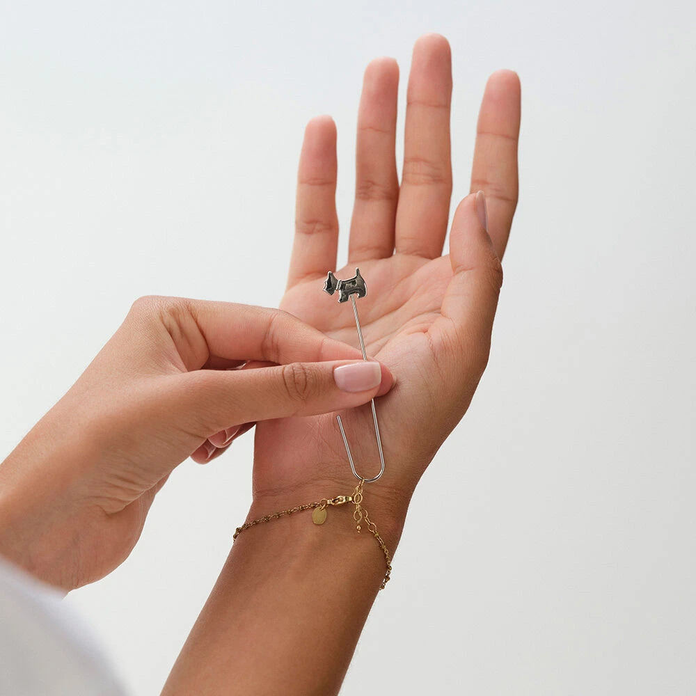 Attache bracelet en forme de Scottie qui permet d’attacher seule en un clin d’œil son braceler souple. L’accessoire indispensable signé Agatha pour vous faciliter la vie de tous les jours.