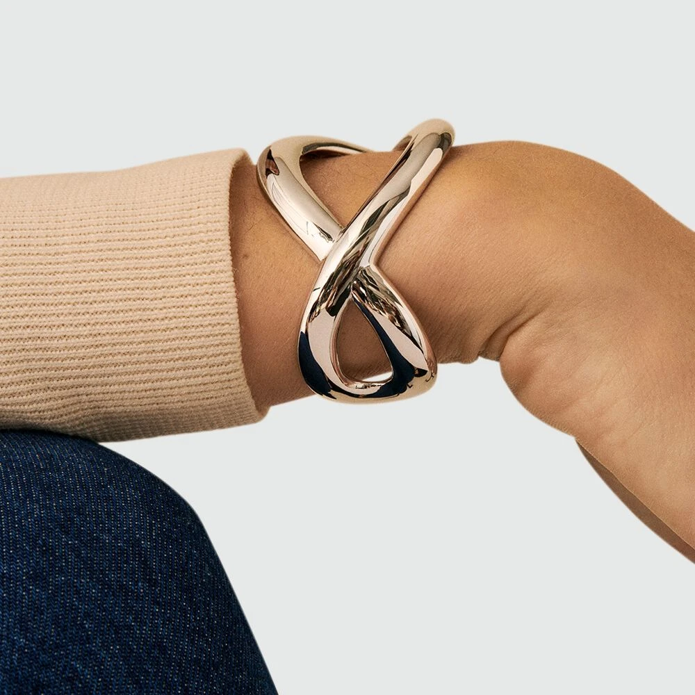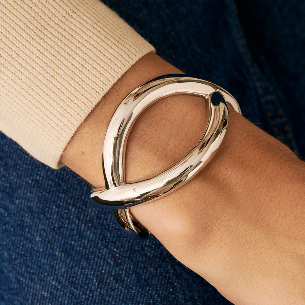 Manchette en argent véritable avec un jeu de gouttes entrelacées.