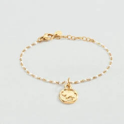 Médaille zodiaque Cancer. Protectrice et intuitive, cette médaille made in France en laiton doré à l’or 750/1000 reflète la sensibilité du Cancer. Gravée à la main recto verso : un crabe délicat, une lune apaisante.