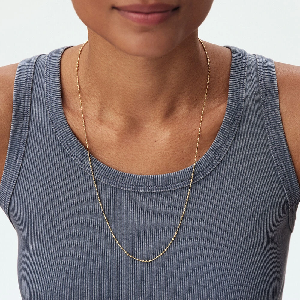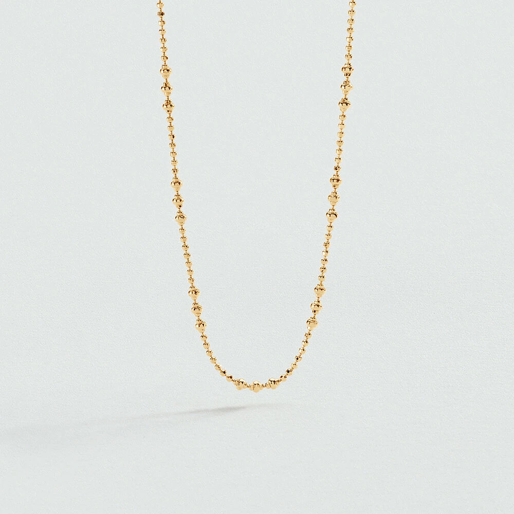 Collier long en chaîne boule en laiton doré à l’or 750/1000. Personnalisez votre bijou et changez-le au gré de vos envies en ajoutant à votre chaîne un ou plusieurs pendentifs charms de notre collection Talismans.. Ce bijou mesure 600mm et contient une rallonge de 50mm